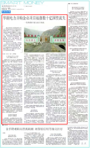 2013年(nian)7月(yue)5日刊登(deng)的《華(hua)潤電力并(bing)購(gou)企(qi)業項目被指數(shu)十億國(guo)資(zi)流失》一文,引起中(zhong)紀委和國(guo)務院國(guo)資(zi)委等監管部門重(zhong)視,掀開了華(hua)潤集團腐(fu)敗(bai)窩(wo)案!