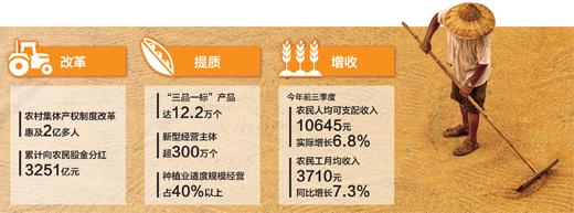 這一年,以農業供給側結構性改革為主線,由增產導向轉變為提質導向,質量興農、綠色興農、品牌強農正成為農業發展的主旋律。這一年,深化戶籍制度改革,推進異地就醫結算,農民工享受到更多公共服務。這一年,整治農村人居環境,大病救治范圍擴大,農村民生持續改善……