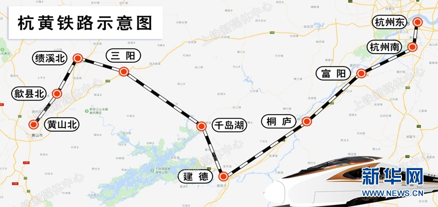 25日,杭州至南昌高速鐵路杭州至黃山段正式開通運營。杭昌高鐵杭黃段東起浙江省杭州市,向西經杭州富陽區、桐廬縣、建德市、淳安縣,進入安徽省績溪縣,終至黃山市,線路全長265公里。全線設杭州南、富陽、桐廬、建德、千島湖、三陽、績溪北、歙縣北、黃山北9座車站,初期運營時速250公里。