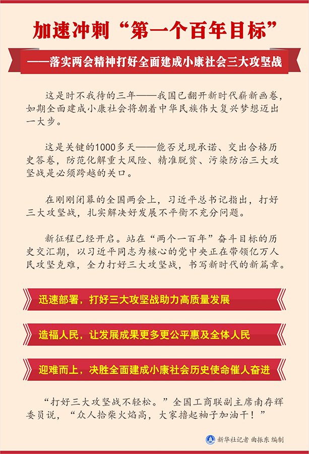新華社(she)北京3月29日電? 題:加速沖刺(ci)“第一個百年目(mu)標”——落(luo)實兩(liang)會精(jing)神打(da)好全(quan)面建成小康社(she)會三大(da)攻堅戰