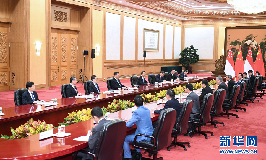 習近平指出,今年是中華人民共和國成立70周年,也是新加坡開埠200年,明年兩國將迎來建交30周年,雙邊關系面臨新的發展契機。雙方要持續深化政治互信和利益融合,在涉及彼此核心利益和重大關切問題上相互尊重,在共同發展的道路上相互支持。中新是共建“一帶一路”的天然伙伴。新加坡積極支持和參與共建“一帶一路”,在這一框架內的合作起步早、起點高、格局大,為新時期兩國關系發展提供了新動力,也為沿線國家高質量、高水平共建“一帶一路”發揮了示范作用。雙方要立足中新合作,推動地區和沿線國家共同發展,推進“陸海新通道”和三方合作。雙方要繼續堅定支持經濟全球化和多邊主義,推動共建“一帶一路”同《東盟互聯互通總體規劃2025》對接,促進東亞經濟一體化。