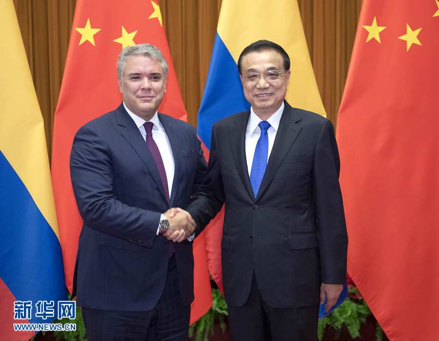 7月31日,國務院總理李克強在北京人民大會堂會見來華進行國事訪問的哥倫比亞總統杜克。 新華社記者 李濤 攝