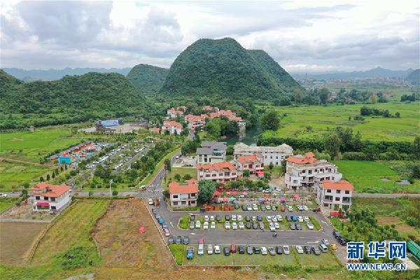 這是8月4日無人機拍攝的貴州省安順市平壩區夏云鎮小河灣村風光。新華社記者 李凡 攝