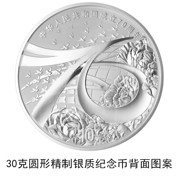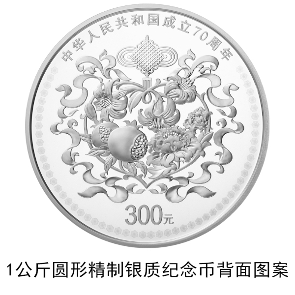 央行介紹,金質紀念幣和銀質紀念幣正面圖案均為中華人民共和國國徽,并刊國名、年號。金質紀念幣有150克圓形和8克圓形兩種,其中150克圓形金質紀念幣背面圖案為寓意民族團結同心,普天歡頌國慶的組合圖案,最大發行量2000枚。銀質紀念幣有300元、50元、10元三種面額。該套金銀紀念幣由中國金幣總公司總經銷。