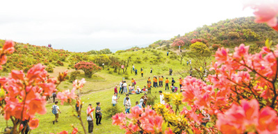 江西牙梳山風景區,大片鮮艷的杜鵑花競相綻放。影像中國