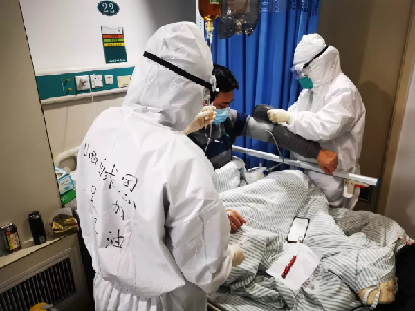山西援鄂醫療隊仙桃重癥組成員在工作。
