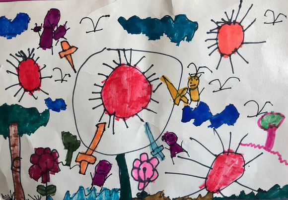 圖為吳丹兒子滴滴畫的《消滅病毒》。新華網發