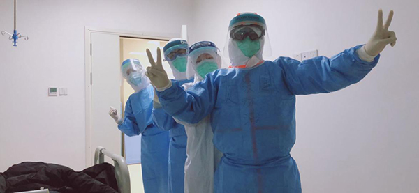 喜訊不斷從隔離病房傳出:一位76歲的老人,經過精心護理,病情也逐漸好轉。今天見到費國、陳浩然、賈燕三位醫療隊員的時候,向他們豎起了大拇指。