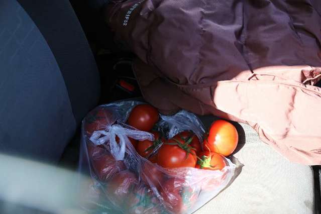 2月16日,湖北省武漢市,許可副駕旁的番茄。中青報·中青網記者 趙迪攝