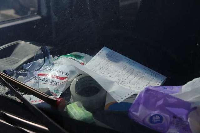 2月16日,湖北省武漢市,許可送菜車車窗旁的物品。中青報·中青網記者 趙迪攝