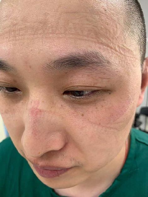 朱瑞臉上被壓出的印記。(福州市團委供圖)