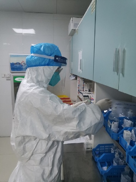 如今的他,每天大部分時間在紅區(污染區)負責為患者掛瓶抽血檢查等,鮮有空閑,“每天確診的病人還比較多,雖說每天也有病人出院,但還不能掉以輕心。”