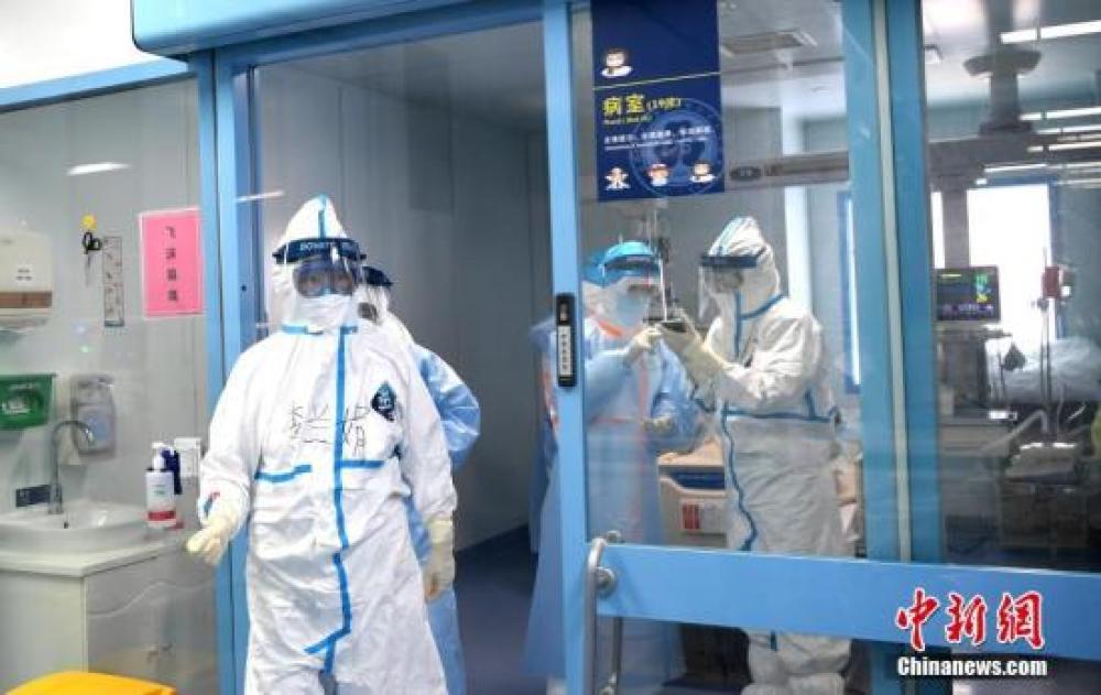 2月20日,中國工程院院士、國家衛健委高級別專家組成員李蘭娟在武漢大學人民醫院東院重癥ICU病房查房,了解新冠肺炎重癥患者治療情況。圖為李蘭娟院士走進更衣室前。中新社記者 安源 攝