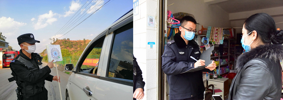 左圖為正在轄區疫情防控卡點值守的大兒子王麒灃;右圖為摸排轄區人員活動軌跡的小兒子王杰暉。王春艷攝