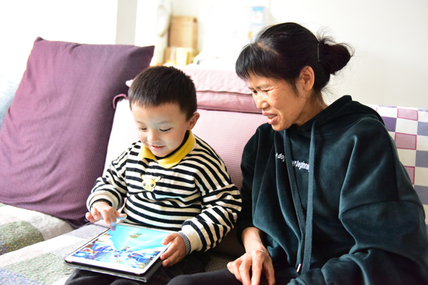 圖為獨自在家帶孫子的師華仙。王春艷攝