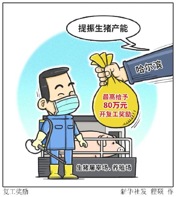 新華社哈爾濱3月28日電(記者強勇)記者從哈爾濱市政府了解到,為提振疫情影響下的生豬產能,今年哈爾濱市將完成360萬頭生豬養殖任務,并對日均屠宰量500頭以上的生豬定點屠宰廠給予最高80萬元一次性開復工獎勵。