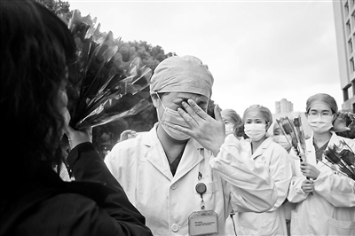 3月30日早上,北京醫療隊醫生張捷最后一次走進了武漢的隔離病房,除去例行查房,他還要向患者們告別。一次次接受著“能回家了,替你們高興”的祝福,一遍遍囑咐著康復中的注意事項。原本半個小時的查房,一個半小時才結束,走出來時,張捷的眼眶濕漉漉的。