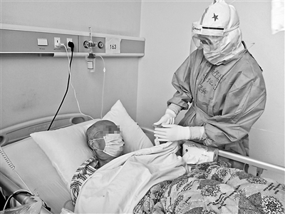 3月30日下午,已經沒有檀學兵的班次了,但她還是穿上防護服進了病房,敲門進去,老胡轉過來看見是她,淚花一下出來了。