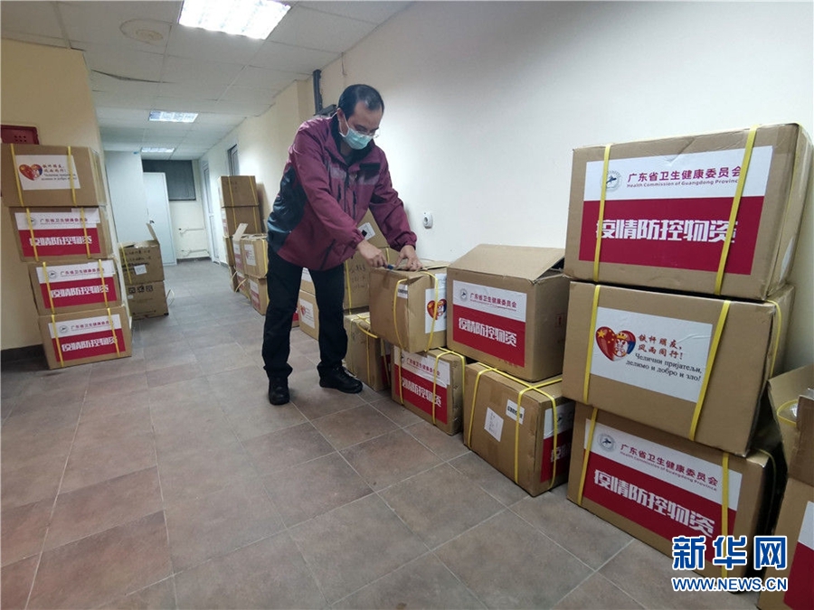 3月28日,在塞爾維亞首都貝爾格萊德的中國赴塞爾維亞抗疫醫療專家組駐地,專家組成員龍其穗整理清點物資,為第二天使用的防護用具做好準備。這是他每晚必做的工作。新華社發(專家組供圖)