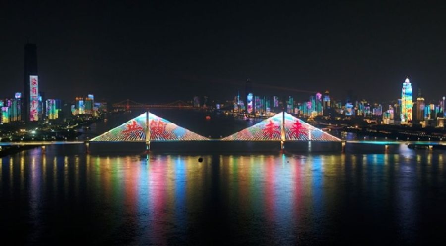 來自這座城市的滿滿謝意,將長江裝點成閃耀的“銀河”,與星空交相輝映。