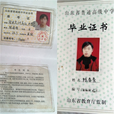 陳春(chun)秀回憶,2004年6月(yue)參加完高考后,報(bao)了三個(ge)(ge)志愿,前(qian)兩個(ge)(ge)是上海的學校(xiao),最后一(yi)個(ge)(ge)是山東(dong)理工大(da)學。她給記者(zhe)提供的一(yi)份2004年山東(dong)省(sheng)普(pu)通(tong)高等(deng)學校(xiao)錄取新生(sheng)名(ming)冊(ce)顯示(shi),陳春(chun)秀當年的高考成績546分,離本科線(xian)差3分,被(bei)填報(bao)的第三志愿——山東(dong)理工大(da)學國際經(jing)濟與貿易專業(ye)錄取。