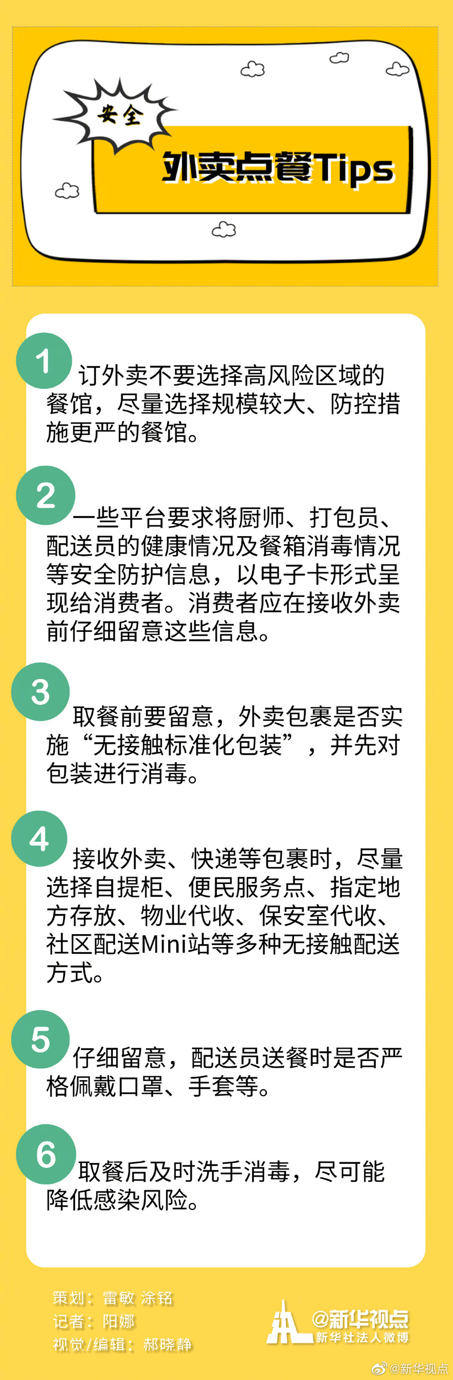 6月23日(ri)下午,北京市通報了(le)一例(li)外賣平臺(tai)送餐(can)(can)人(ren)員(yuan)感染(ran)新冠肺炎的病(bing)例(li)。該(gai)病(bing)例(li)6月1日(ri)至17日(ri)每日(ri)通過“餓(e)了(le)么”平臺(tai)接(jie)單(dan)送餐(can)(can),平均每天接(jie)50單(dan)左右。外賣員(yuan)接(jie)觸人(ren)員(yuan)多、暴(bao)露風險(xian)高,大家開始擔憂,病(bing)毒傳播途徑(jing)又多了(le)一條。外賣還能(neng)點嗎?怎(zen)么點外賣、怎(zen)么收(shou)快遞才能(neng)降(jiang)低(di)被傳染(ran)風險(xian)?小(xiao)編為你準(zhun)備了(le)這份“外賣點餐(can)(can)Tips”,收(shou)好(hao)!