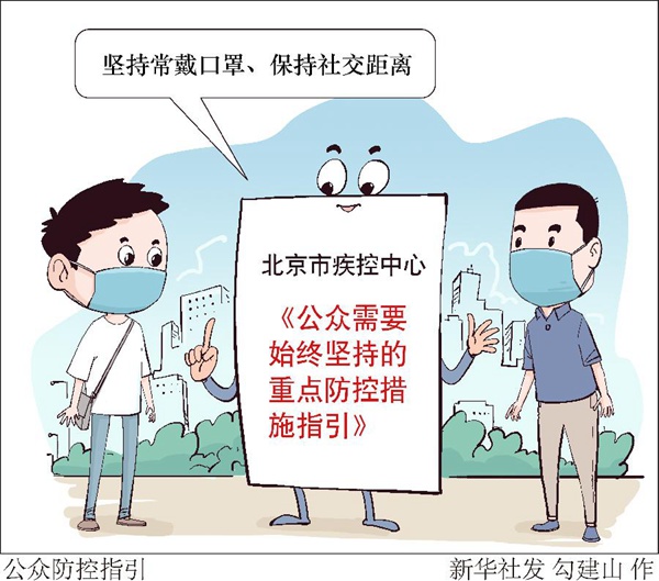 新華社北京(jing)6月27日電(dian)(記者俠克)北京(jing)市疾控中心日前發(fa)布《公眾需要(yao)始(shi)終(zhong)堅持的重點防控措施指引(yin)》,提示應堅持常(chang)戴口罩,保持社交距離,保持手衛生,配合做(zuo)好(hao)(hao)健康監(jian)測(ce),做(zuo)好(hao)(hao)飲食衛生,做(zuo)好(hao)(hao)日常(chang)清潔和(he)消毒。