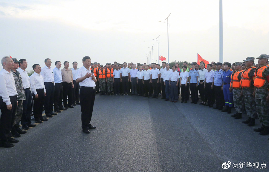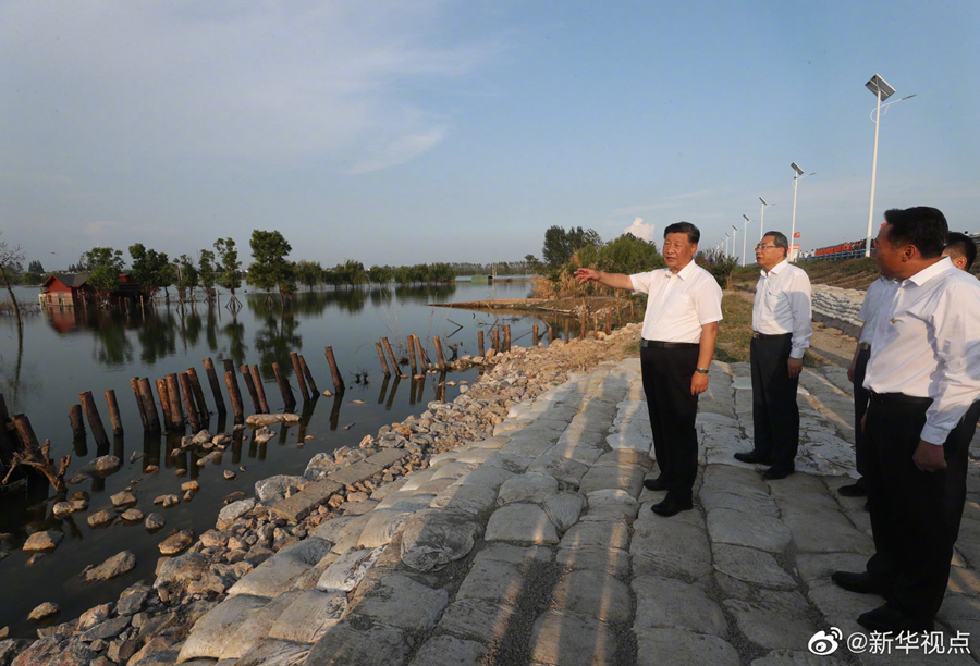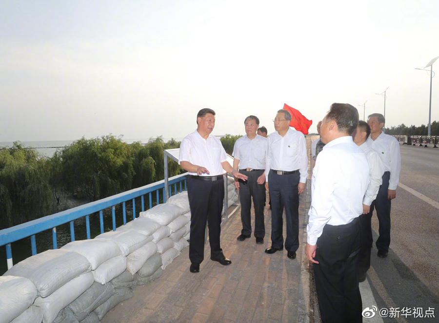 習近平總書記19日下午在安徽省合肥市考察調研。他在肥東縣十八聯圩生態濕地蓄洪區巢湖大堤羅家疃段,察看巢湖水勢水情,看望慰問防汛抗洪一線人員、先進典型代表和參加抗洪搶險的解放軍、武警部隊官兵。當天下午,習近平在合肥還參觀了安徽創新館和渡江戰役紀念館,了解安徽省科技創新和新興產業發展情況,重溫革命歷史、緬懷革命先烈。(文字記者:張曉松 攝影記者:鞠鵬 王曄 燕雁)