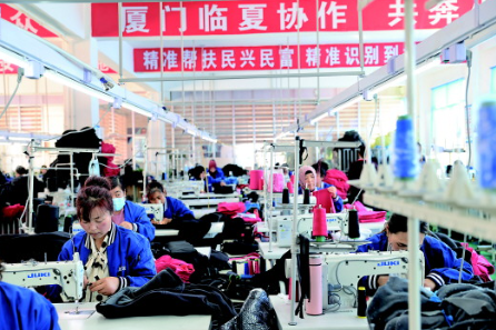 廈門援建臨夏的廈臨遠達服飾扶貧車間。