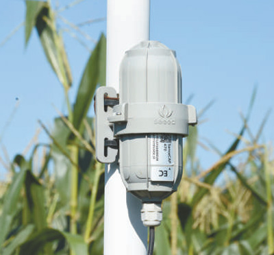 架設在河北定州市東留春鄉北邵村玉米田中的物聯網傳感器。史自強攝