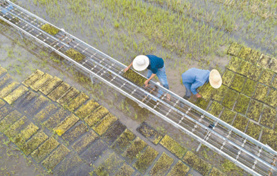 機(ji)械化育秧的推(tui)廣,大(da)大(da)降低了農民的勞動強度,育秧質量也顯著提升。“現(xian)在都是(shi)精準化育種(zhong),一穴控制在4—6粒(li),基(ji)本同期發(fa)芽。20天左(zuo)右(you),秧苗(miao)長到八(ba)九厘米,就可以移栽了。”謝成富說(shuo)。水稻栽插,講究“淺、勻、直、穩”,“流水線育秧出來的苗(miao)又(you)齊又(you)壯,為機(ji)插秧提供了有利條件。”