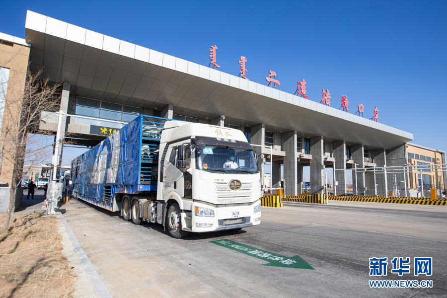 11月13日,載羊車輛從內蒙古出入境邊防檢查總站二連出入境邊防檢查站綠色通道快速通關。新華社發(郭鵬杰 攝)