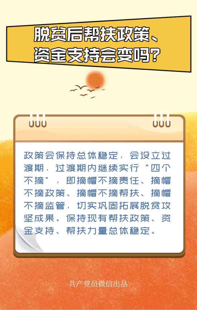 經過8年持續奮斗,我們如期完成了新時代脫貧攻堅目標任務,現行標準下農村貧困人口全部脫貧,貧困縣全部摘帽,消除了絕對貧困和區域性整體貧困,近1億貧困人口實現脫貧,取得了令全世界刮目相看的重大勝利。脫貧后是不是就沒有貧困問題了?脫貧后幫扶政策、資金支持會變嗎?萬一返貧,怎么辦?這些大家最關心的問題,都有明確答案。