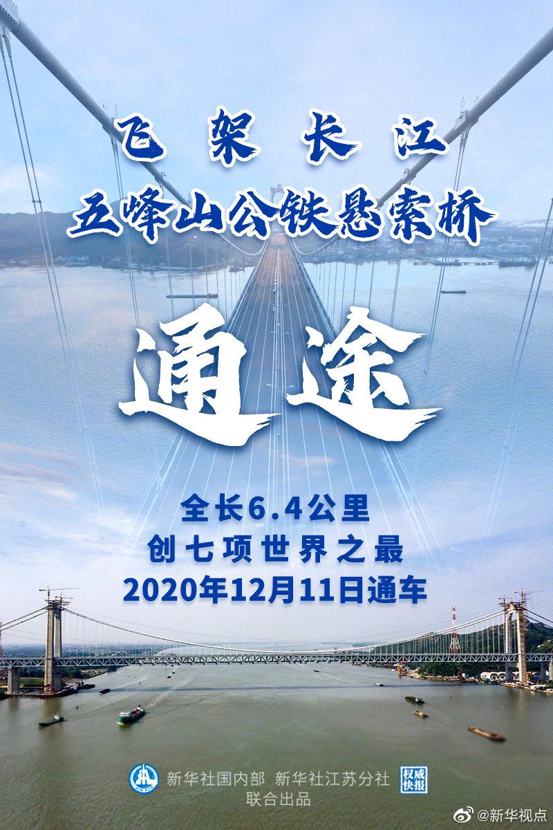 11日上午,世界上最大的公鐵兩用懸索橋——連接江蘇揚州和鎮江的五峰山長江大橋通車啦!大橋全長6.4公里,創七項世界之最。(記者:楊紹功、吳新生 設計:張惠慧、張晨光)?