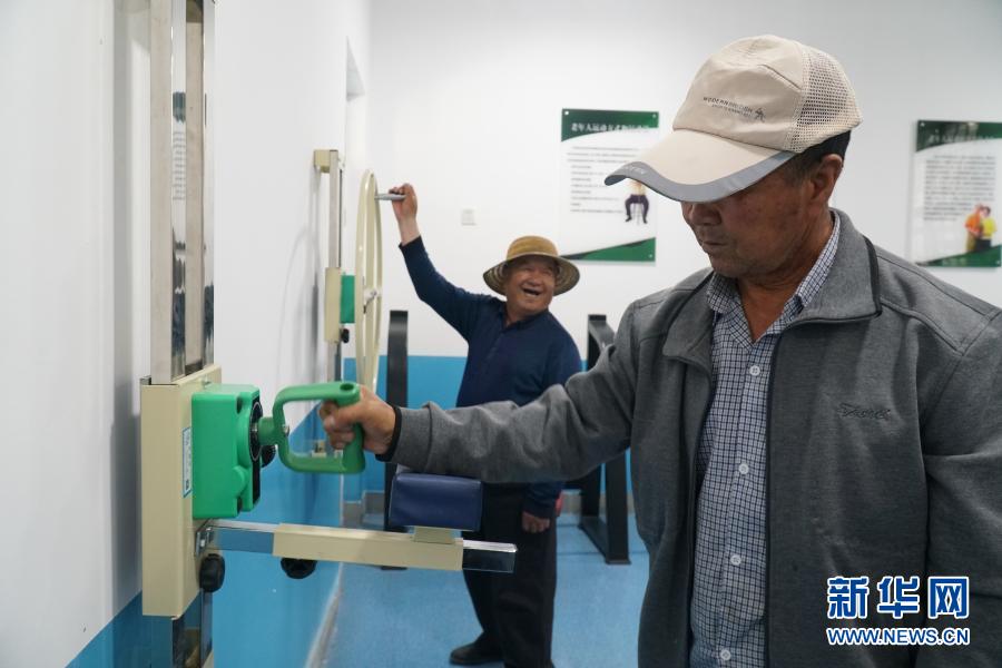 8月13日,在西寧市湟中區多巴鎮黑嘴村老年之家里,老人們在健身室內鍛煉身體。新華社記者 張子琪 攝