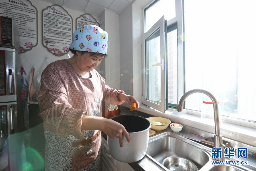10月22日,西寧市城西區溫馨陽光托老所內,護理員張蓉霞在為老人們做飯。新華社記者 吳剛 攝