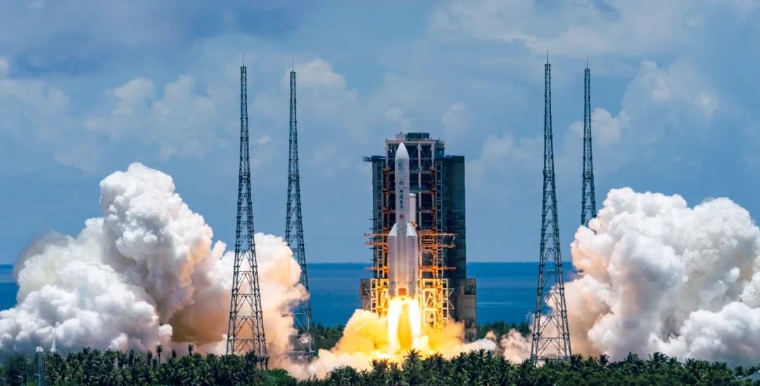 2020年7月23日,長征五號遙四運載火箭在中國文昌航天發射場點火升空,實施我國首次火星探測任務(天問一號任務)。新華社記者 才揚 攝