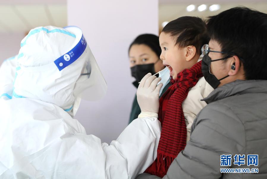 1月5日,在沈陽市皇姑區淮河街一處核酸檢測點,醫務人員為一名小朋友進行核酸檢測。新華社記者 姚劍鋒 攝