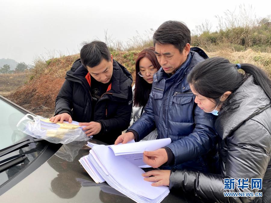 1月27日,駐麻溪口村幫扶工作隊隊長段吉廣(中)在村內協調生豬養殖場建設工作。新華社記者 柳王敏 攝