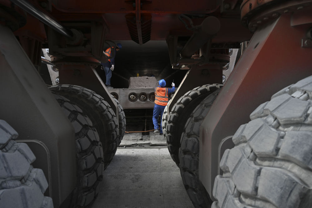 1月28日,杜學剛(右)和工友爬進箱梁,準備拆卸提梁固定螺栓。