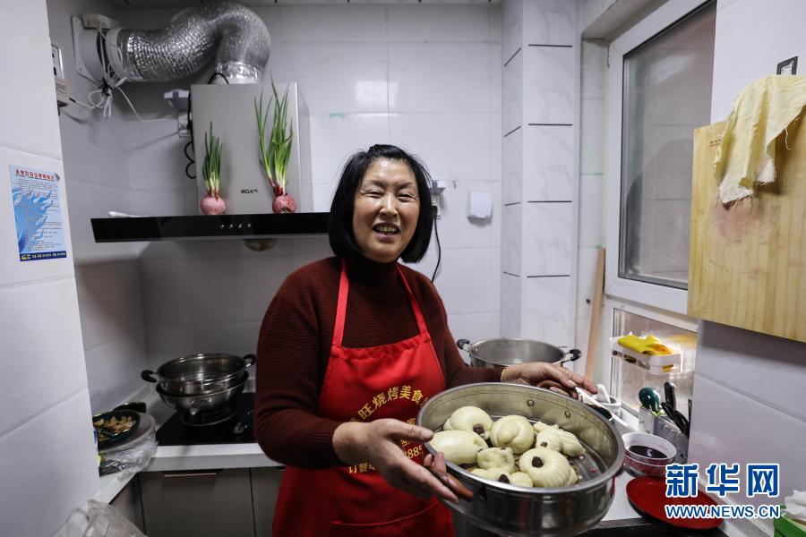 邊慶紅在新居廚房蒸花饃(2月5日攝)。新華社記者 朱崢 攝