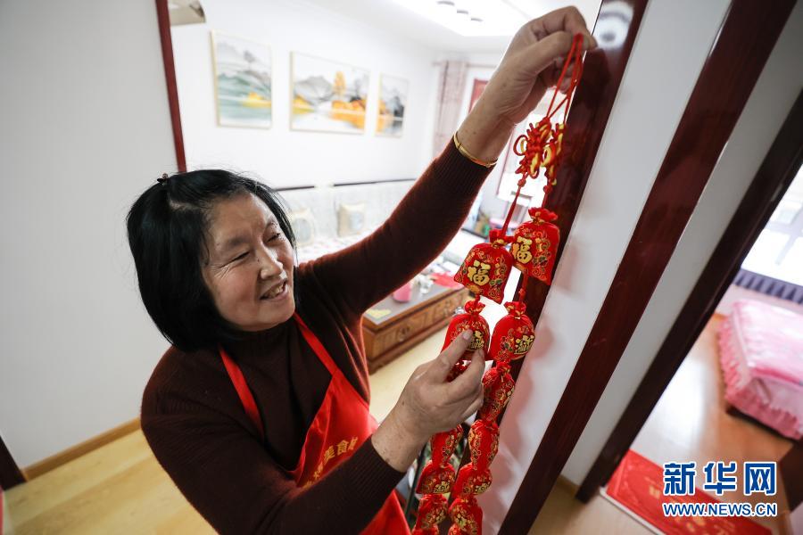 邊慶紅在布置新居(2月5日攝)。新華社記者 朱崢 攝