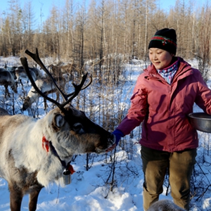馴鹿性情溫順,耐力強,可以負載重物穿山越嶺,有“森林之舟”的美譽。廣袤的大興安嶺森林茂盛,苔蘚遍布,為馴鹿提供了豐富食物。