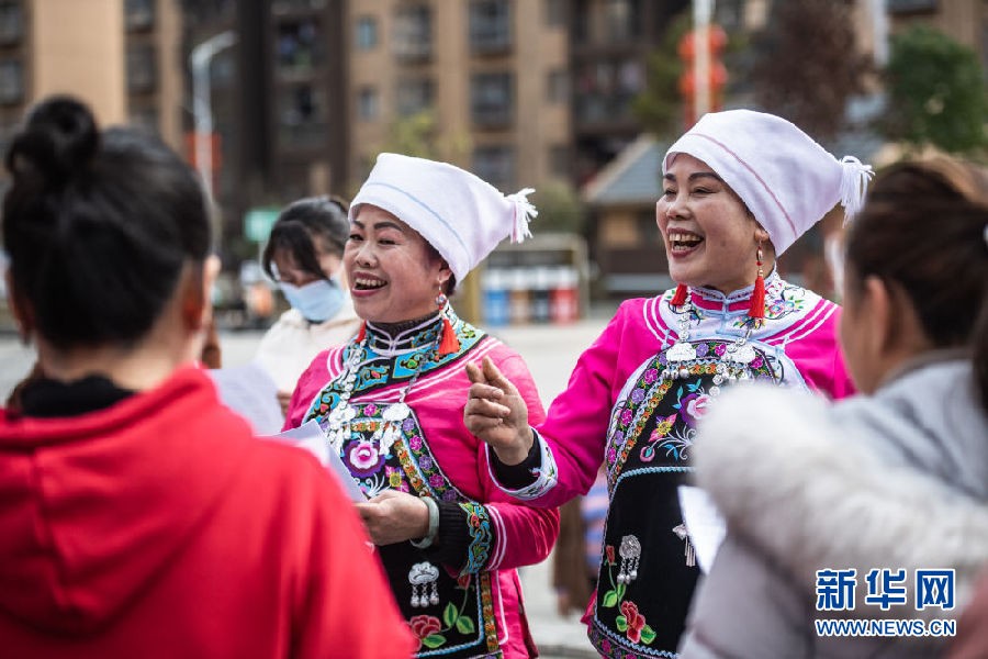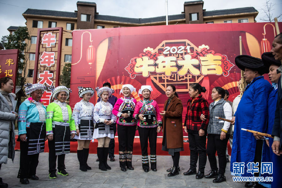 新華社貴陽2月16日電(記者齊健)牛年春節,春滿貴州。在黔南布依族苗族自治州龍里縣,群眾耳熟能詳的布依山歌楊柳調,經過填詞改編成了一首首政策宣講歌。在奮進社區感恩廣場上,不斷有群眾自發加入“金嗓子”志愿服務隊的授歌會。