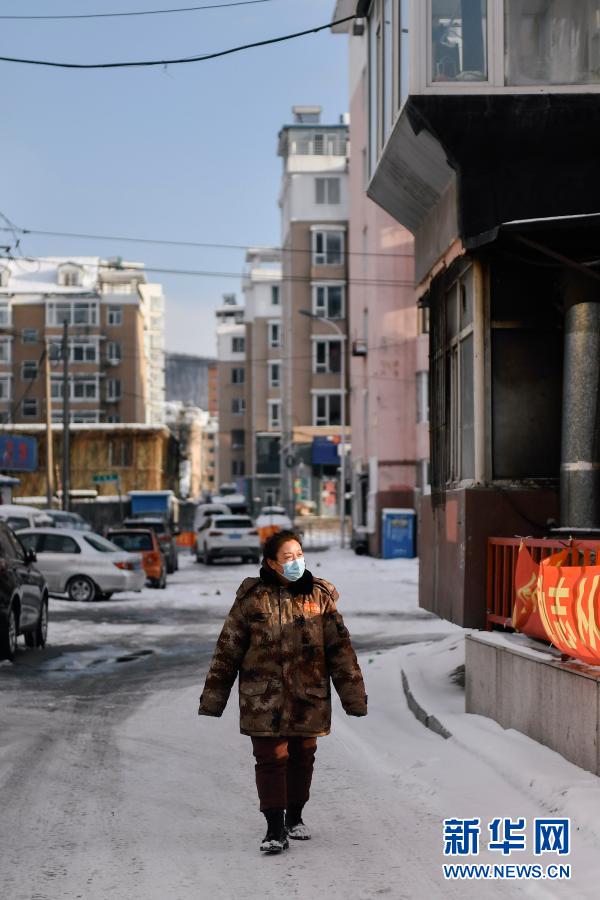 趙淑華在通化市東昌區團結街道文化社區轄區內巡邏(2月15日攝)。新華社記者 許暢 攝
