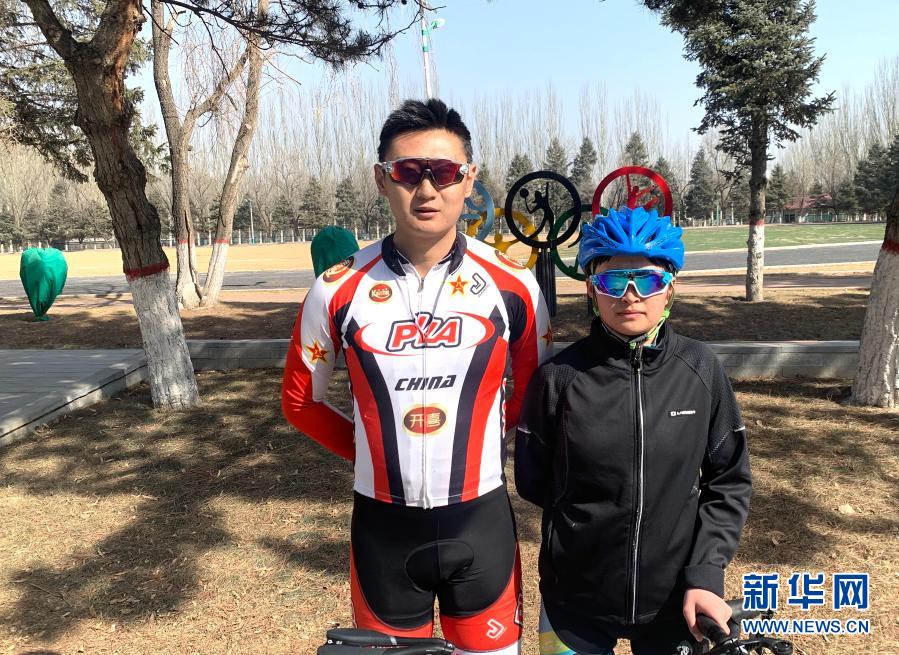 2月24日,在多巴基地,青海省體育運動學校自行車隊教練吳佩倫(左)和隊員李瑩在訓練后合影。新華社記者 李琳海 攝
