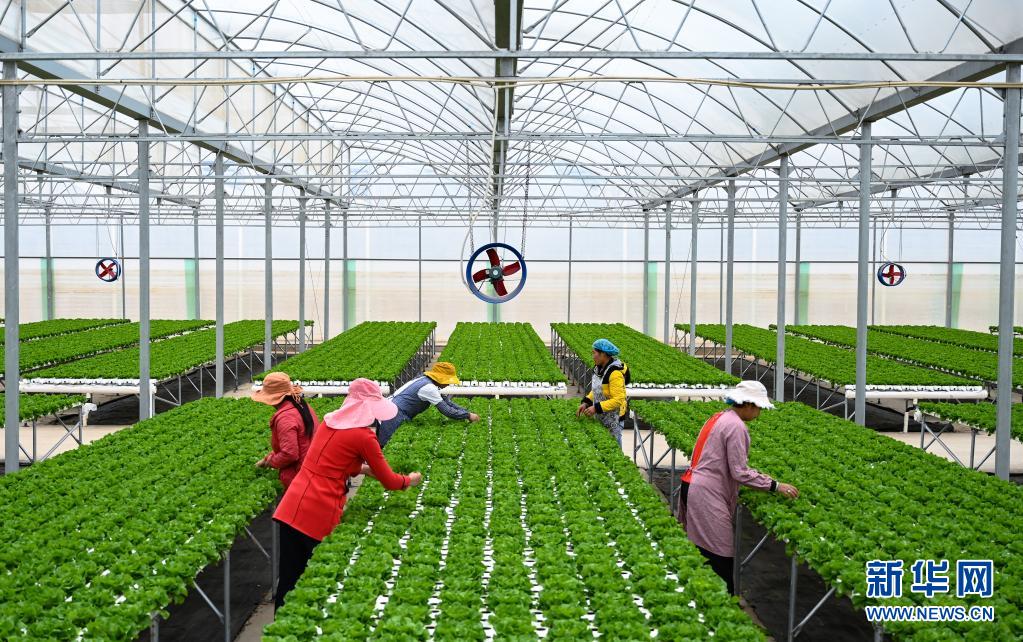 4月27日,搬遷群眾在云南會澤縣道成公司蔬菜大棚里勞作。新華社記者 王冠森 攝