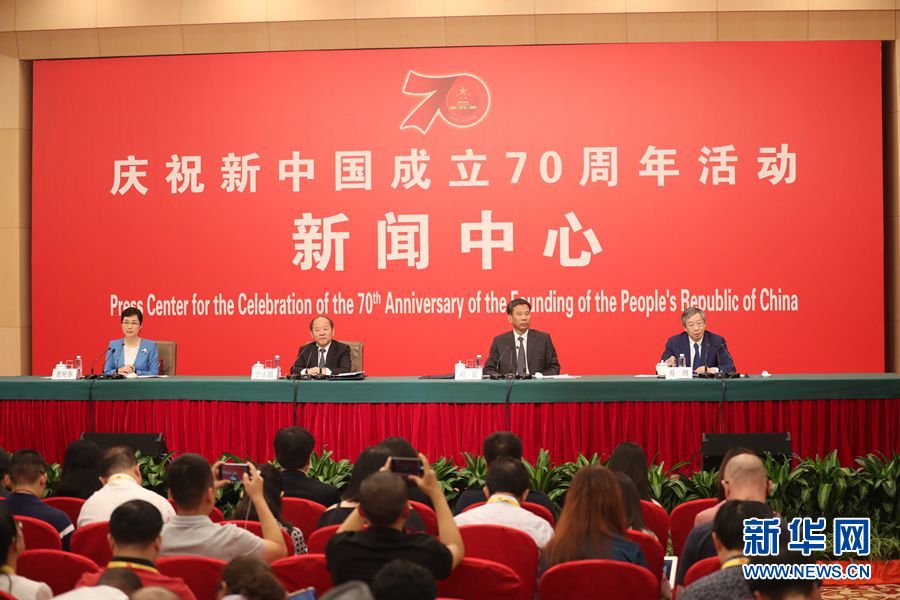 9月24日,慶祝中華人民共和國成立70周年活動新聞中心在北京梅地亞中心二層新聞發布廳舉辦第一場新聞發布會。圖為新聞發布會現場。新華網記者 陳競超 攝