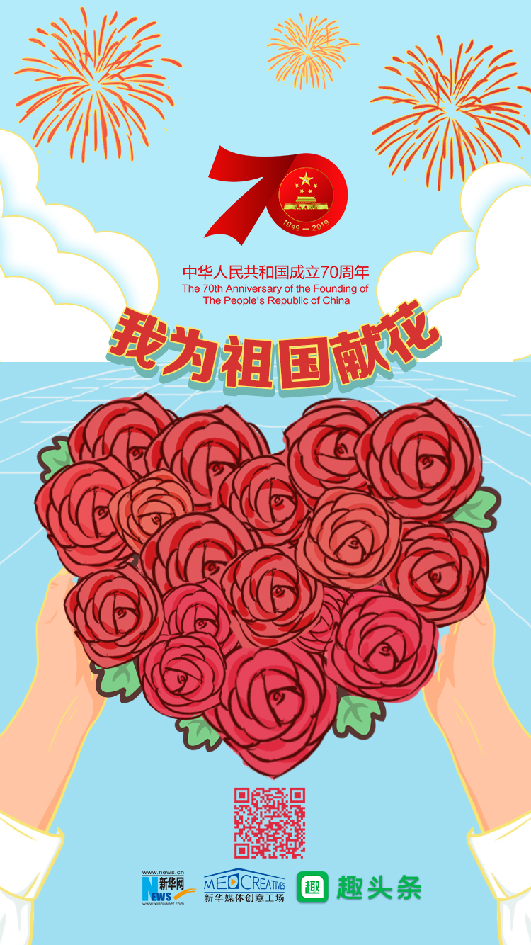 新華網與趣頭條聯合推出H5交互產品“我為祖國獻花”,以手捧鮮花獻給祖國的方式,表達網友對新中國成立70周年的祝福,歡迎廣大網友積極參與。