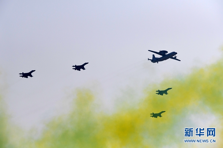 預警指揮機梯隊由空警-500、空警-200預警機和運-8指通機作為領隊機,分別由4架殲-11B戰機護衛。